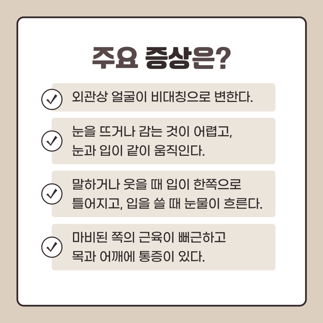 안면마비(구안와사)의 주요 증상은 어떤 것이 있을까요?