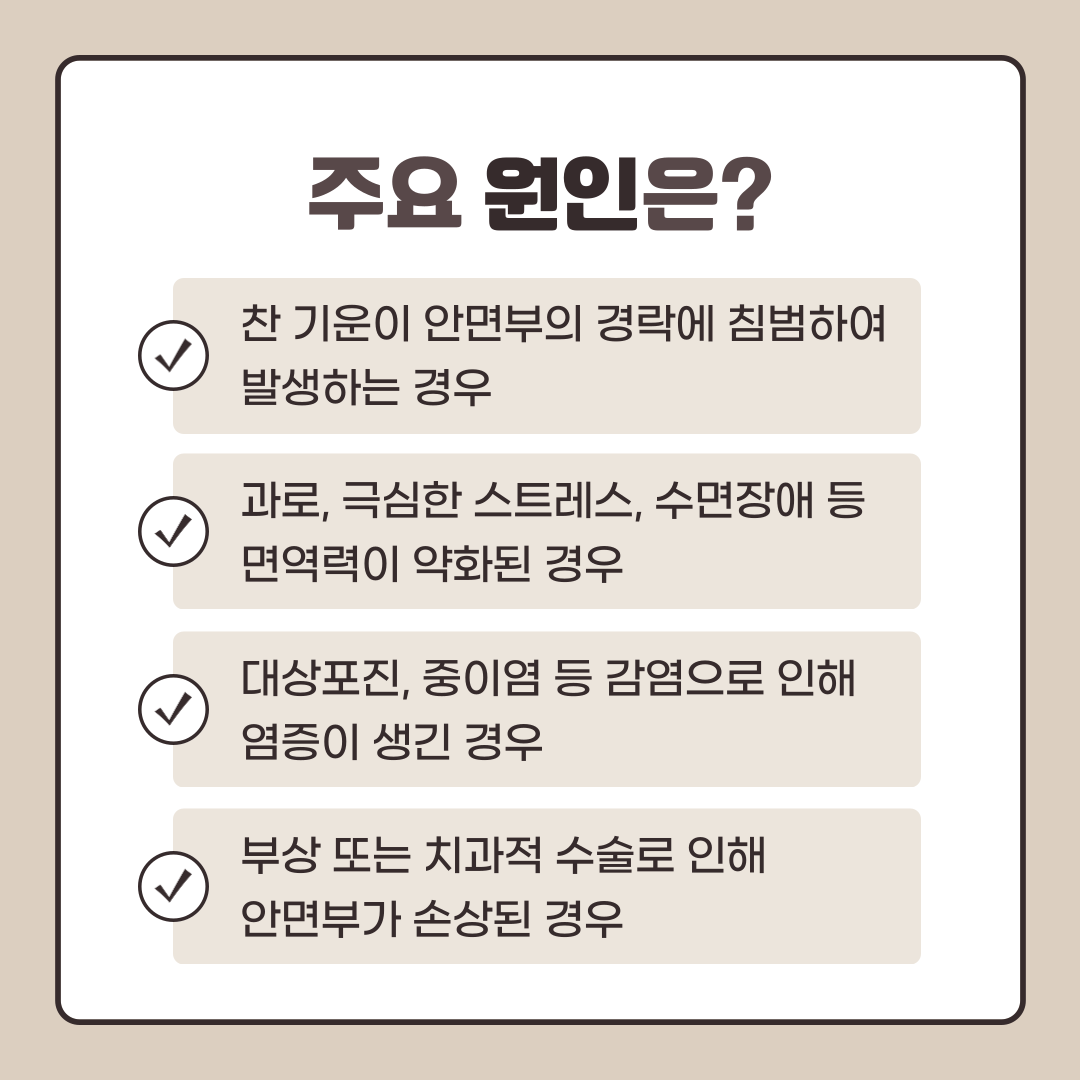 찬 기운이 안면부의 경락에 침범하여 발생하는 경우